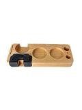 У каждого профессионального инструмента должно быть свое место. Эта база собирает весь ваш инвентарь воедино, превращая зону приготовления кофе в аккуратное и функциональное пространство. Кроме того, органайзер служит полноценной рабочей станцией: специальный паз с накладкой позволяет надежно зафиксировать рожок, чтобы вы могли уверенно и ровно спрессовать кофейную таблетку.